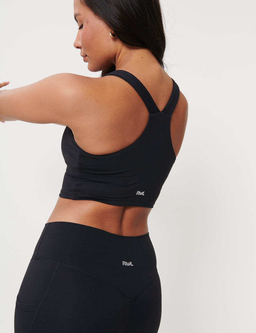 A medium-support sports bra with a flattering cross-back design, blending performance and style for every workout.