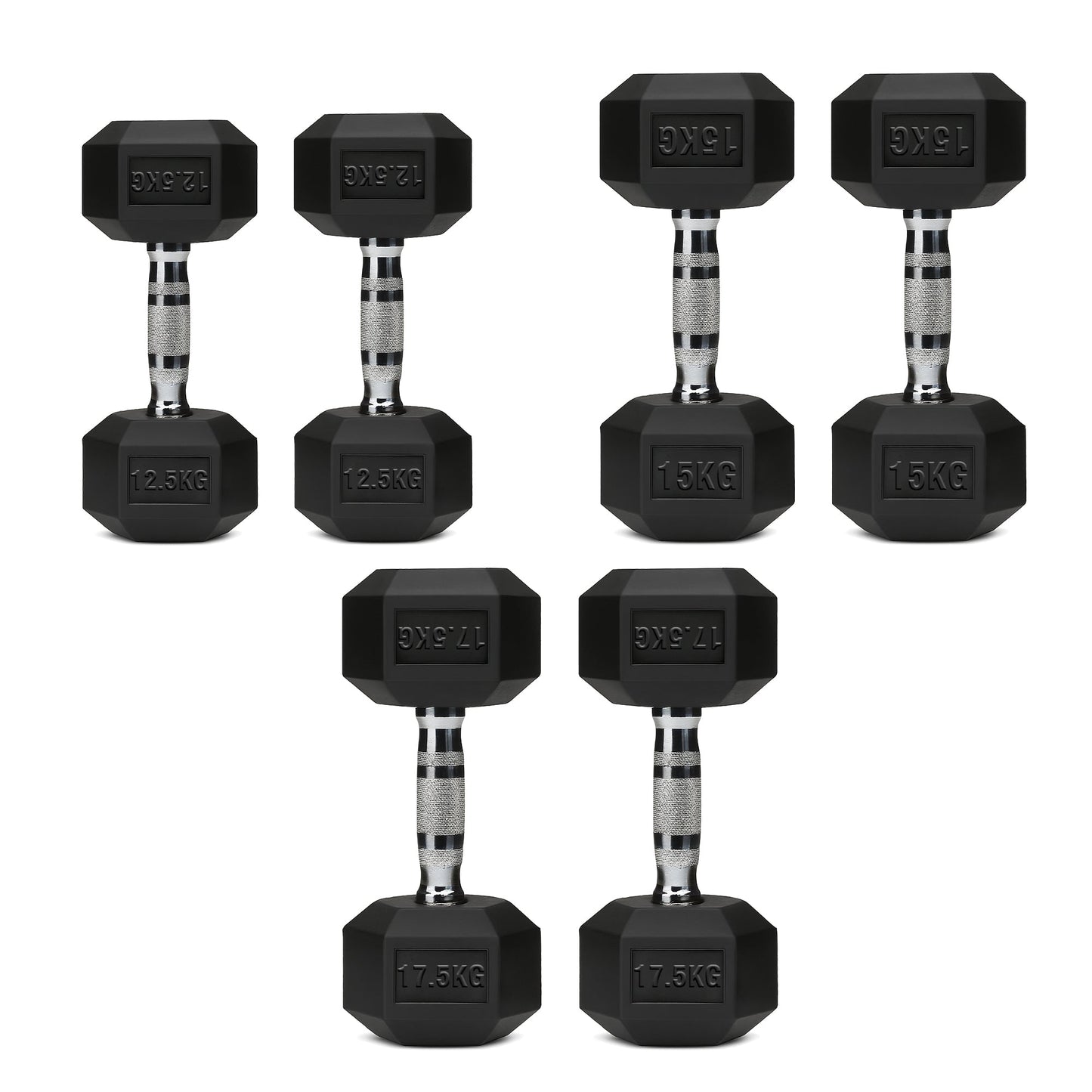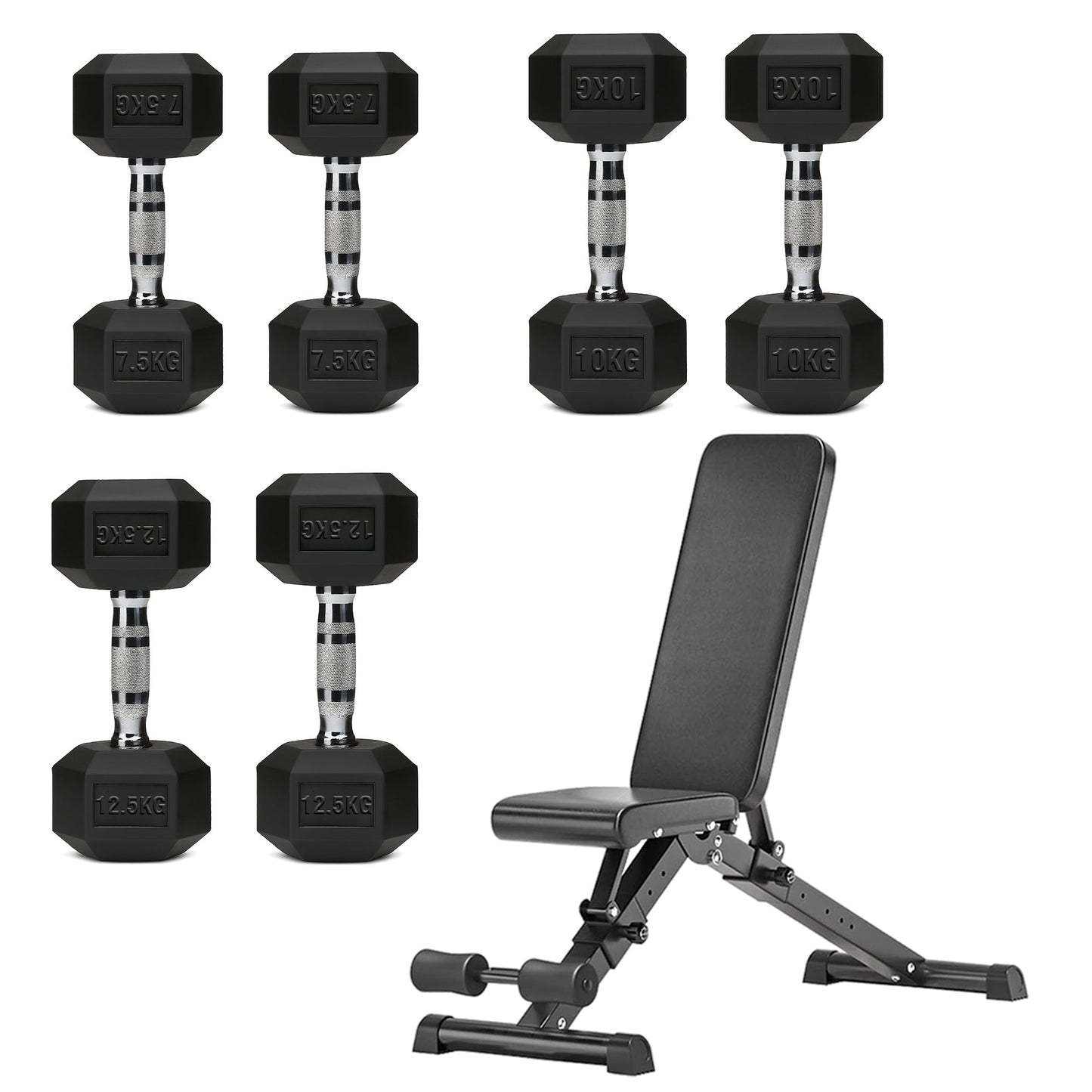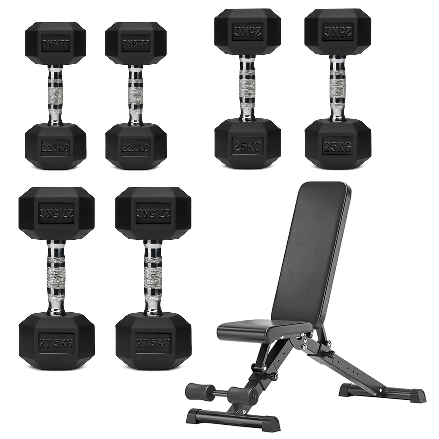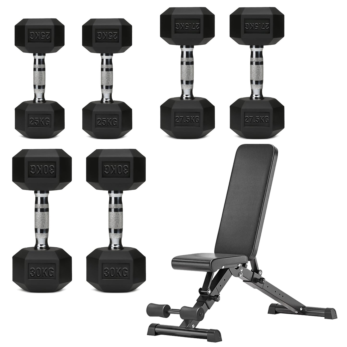 Hex Dumbbell Set with 3-Tier Tree Rack & Optional Bench – Rubber Coated Anti-Roll Weights for Home Gym